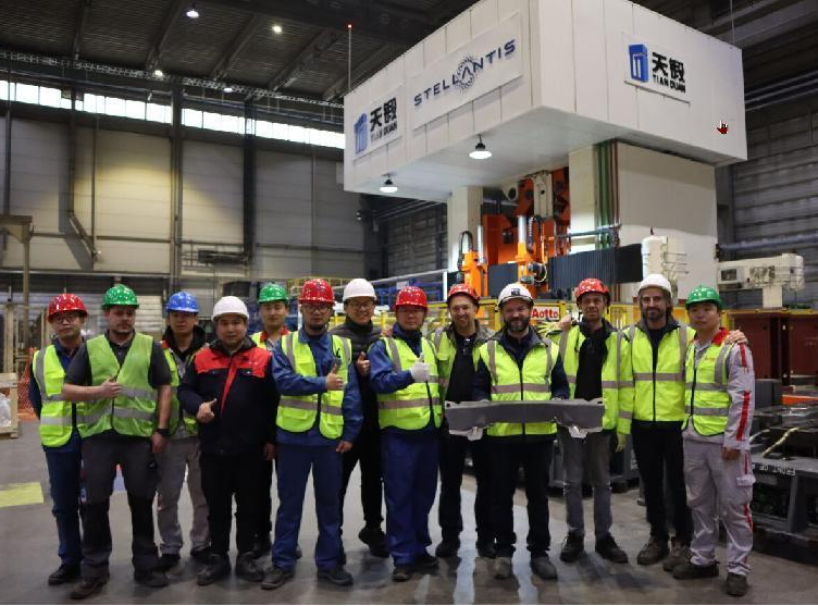 近日,天鍛公司為全球第四大汽車制造商Stellantis集團提供的首條12000kN復合驅動熱成形壓力機自動化生產線在用戶斯洛伐克工廠成功完成安裝調試,實現首件生產。這標志著該產線已具備生產能力,為客戶下一步批量生產奠定基礎。