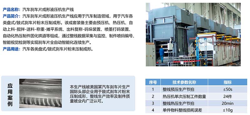 汽車剎車片成形液壓機生產線